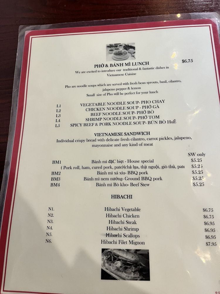 Welcome to Binh Minh Vietnamese Restaurant, a hidden gem in Greensboro, NC, that offers an authentic Vietnamese culinary experience. The menu is a delightful fusion of traditional flavors, featuring popular dishes like pho, bun bo hue, and a variety of banh mi sandwiches, all reasonably priced around $6.75. Special lunch offerings come with soup and an egg roll or salad, ensuring a satisfying meal.